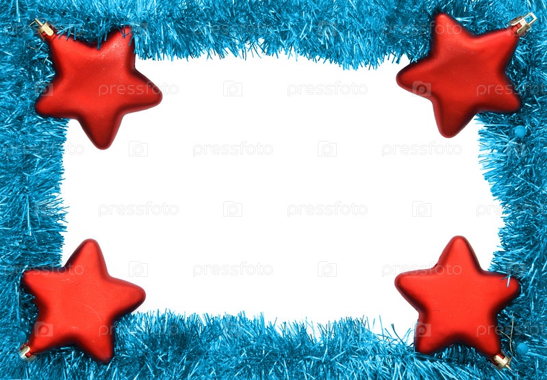 Прямоугольная рамка с новогодней мишурой и звездочками