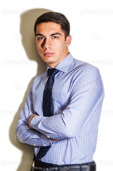 Мужчина-модель в рубашке, изолированный на белом фоне