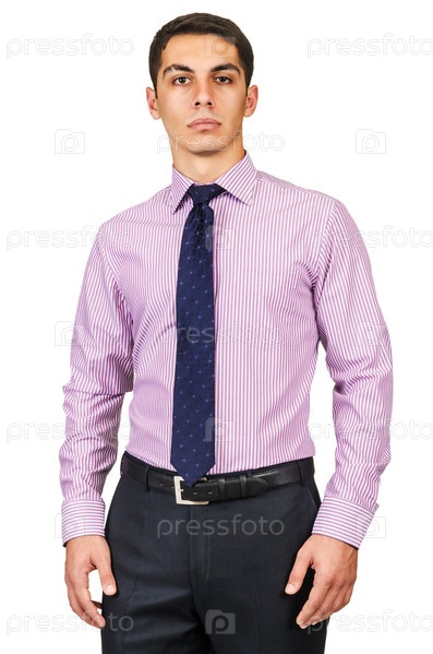Мужчина-модель в рубашке, изолированный на белом фоне