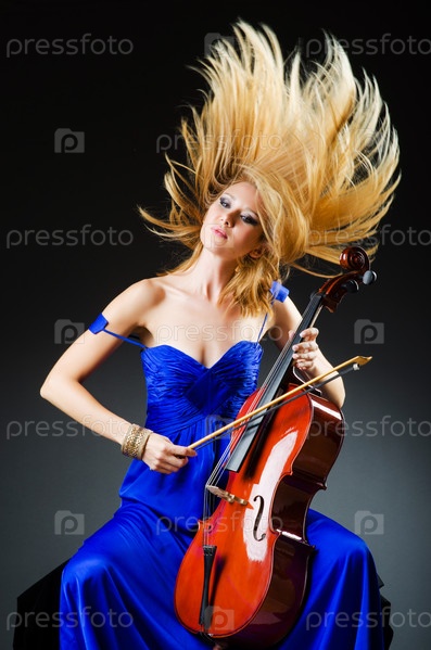Привлекательная женщина с виолончелью в студии