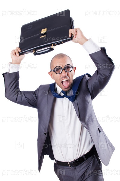 Смешной бизнесмен-ботаник на белом фоне