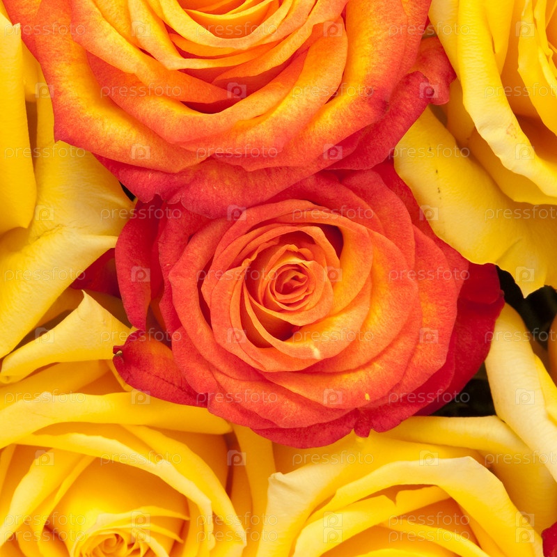 Красно-желтые розы крупным планом