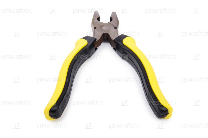 Желтые плоскогубцы, изолированные на белом фоне
