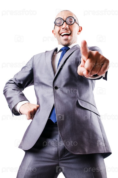 Смешной бизнесмен-ботаник на белом фоне