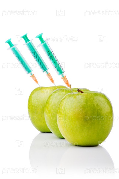 Эксперимент с яблоком и шприцами