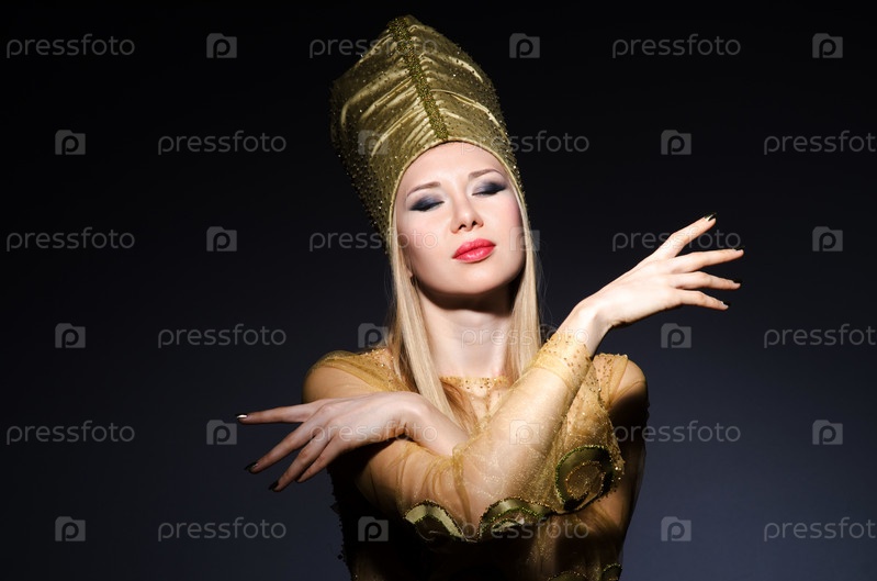 Молодая модель в египетском костюме