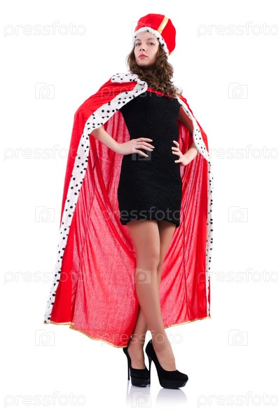 Бизнес-леди в костюме королевы, изолированная на белом