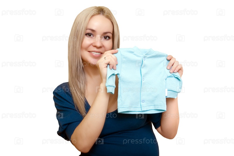 Женщина с маленькой детской кофточкой в руках