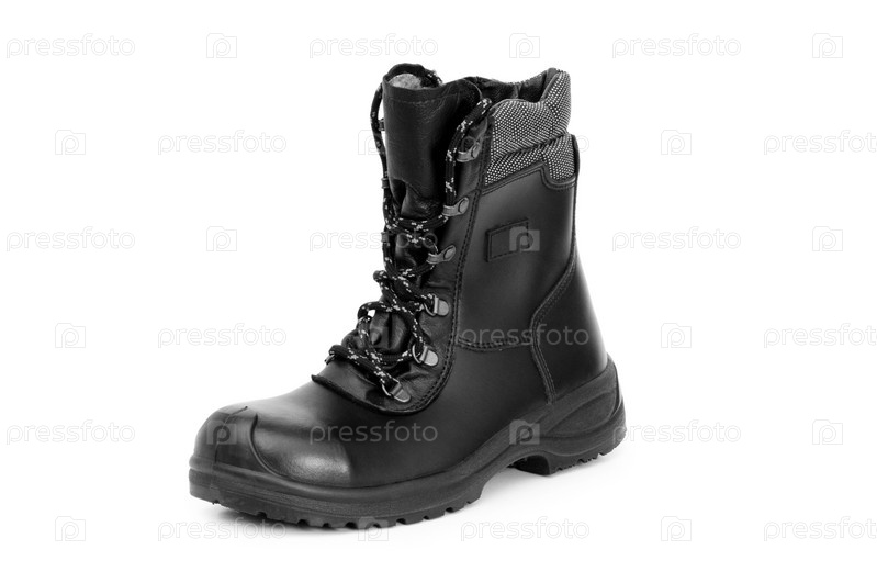 Черный ботинок на белом фоне