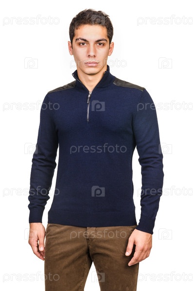 Мужской свитер на модели на белом фоне