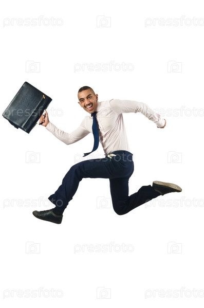 Прыгающий бизнесмен в концепции бизнеса на белом фоне