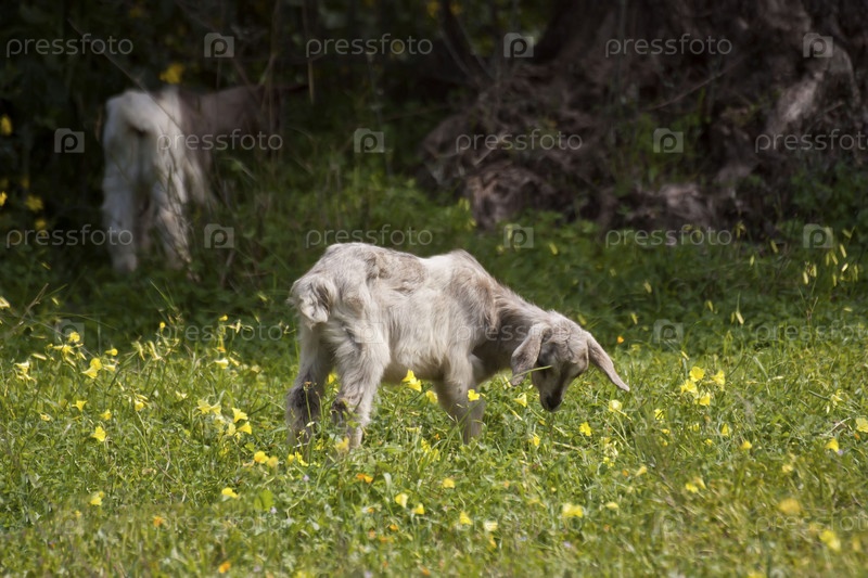 Козленок, пасущийся на лугу