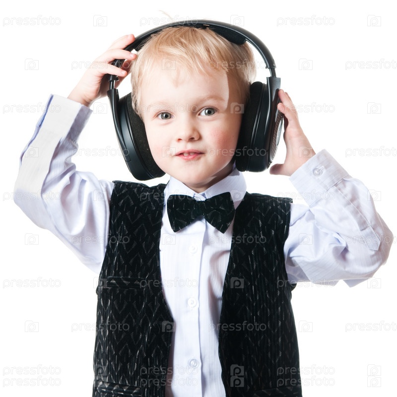 Мальчик в наушниках на белом фоне