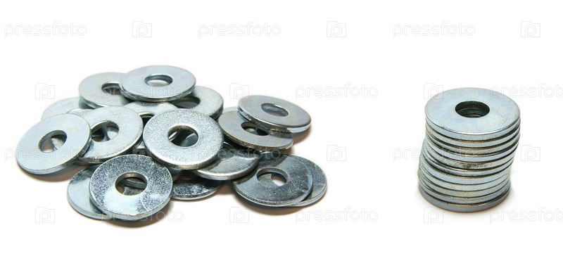 Металлические шайбы на белом фоне