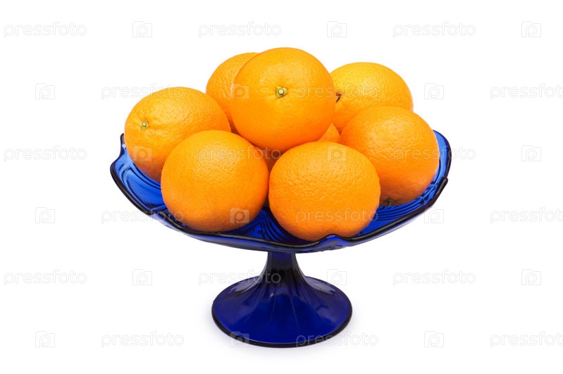 Ваза с апельсинами на белом фоне