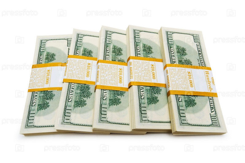 Пачки долларов на белом фоне