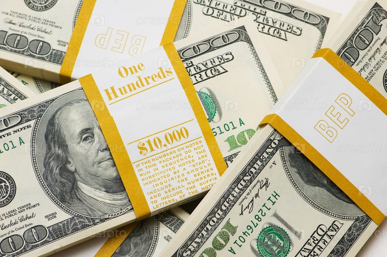 Пачки долларов на белом фоне
