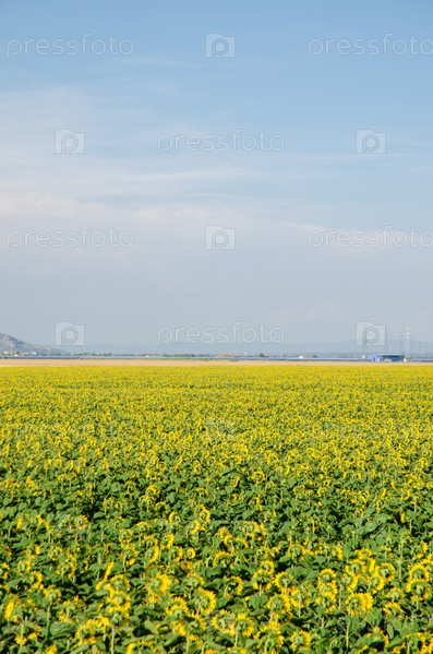 Поле подсолнечника в яркий летний день