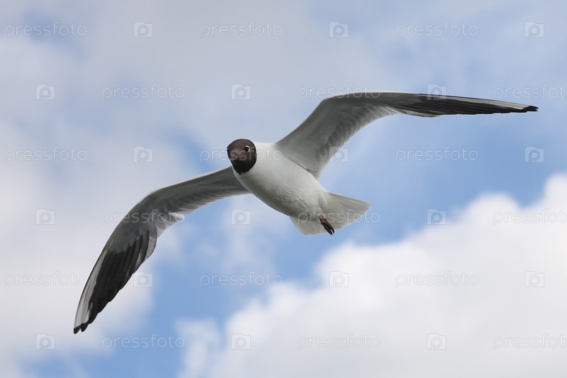 Чайка на темно-синем небе