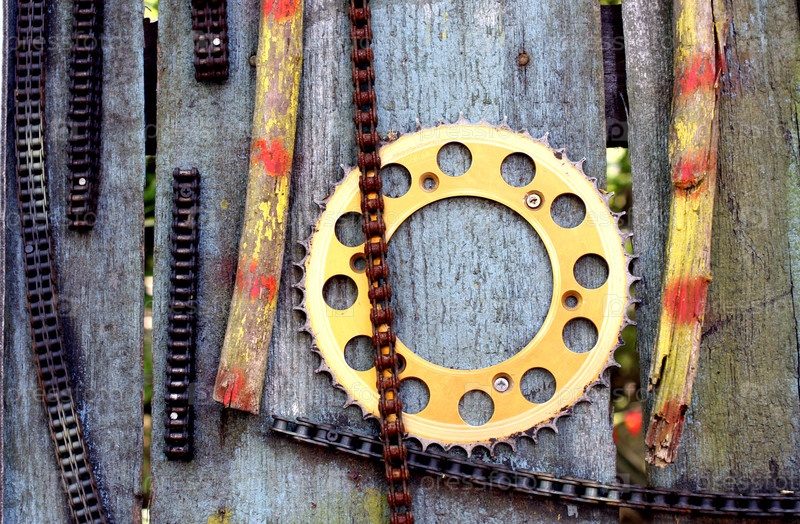 Запасные части от велосипеда на фоне деревянных досок