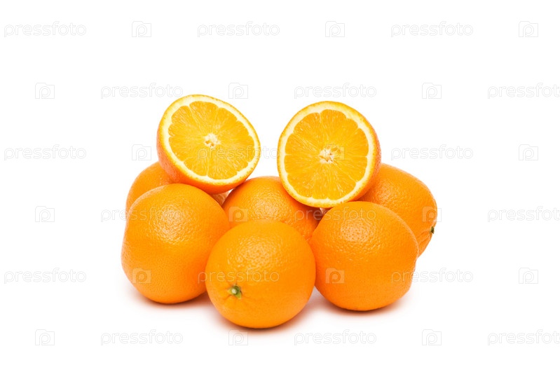 Апельсин и виноград на белом фоне