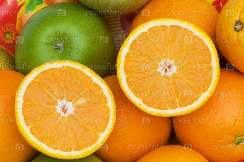 Яблоки и апельсины на белом фоне