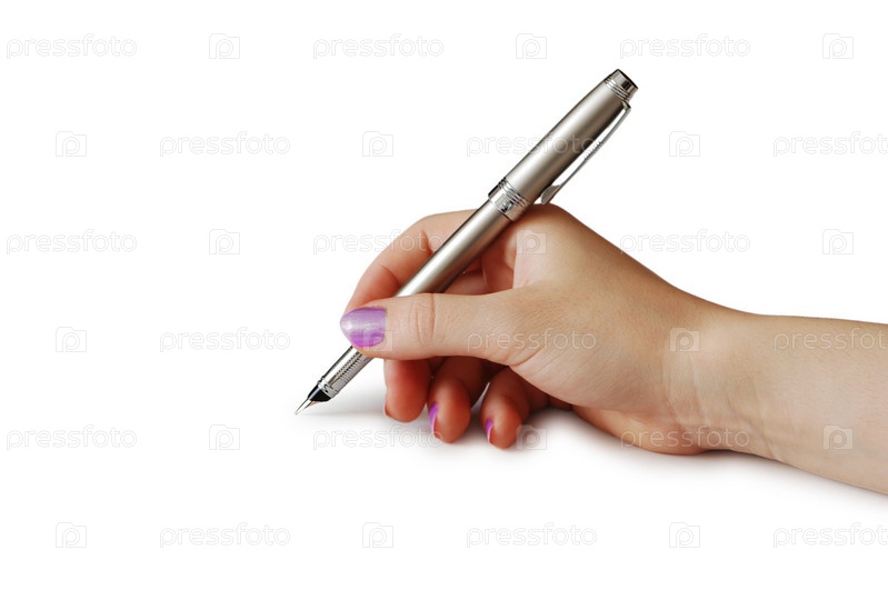Рука с ручкой на белом фоне