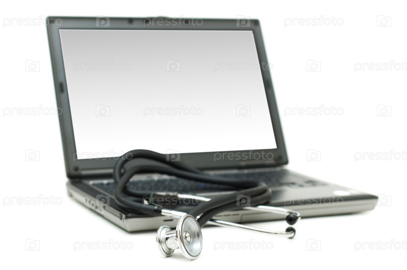Стетоскоп и ноутбук иллюстрирующие концепцию цифровой безопасности