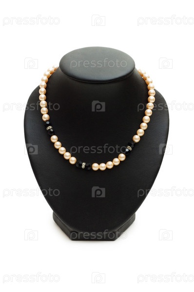 Жемчужное ожерелье на белом фоне