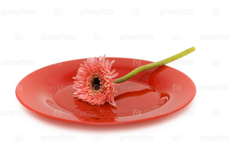 Гербера на красной тарелке