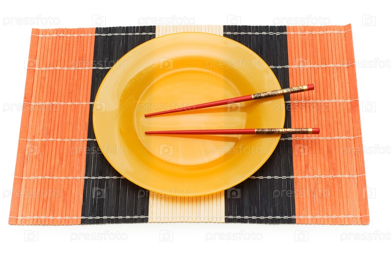 Желтая тарелка и палочки для еды