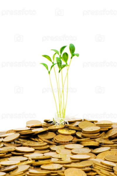 Зеленый рассадник, растущий из кучи монет