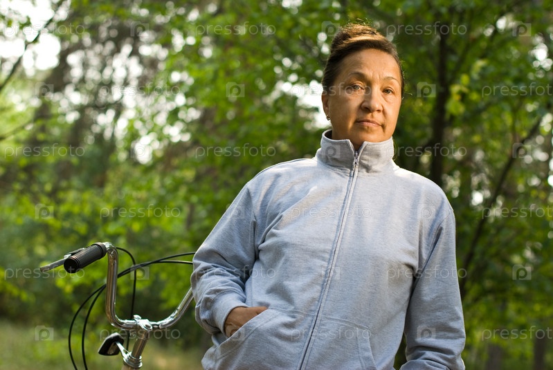 Активная пожилая женщина на велопрогулке