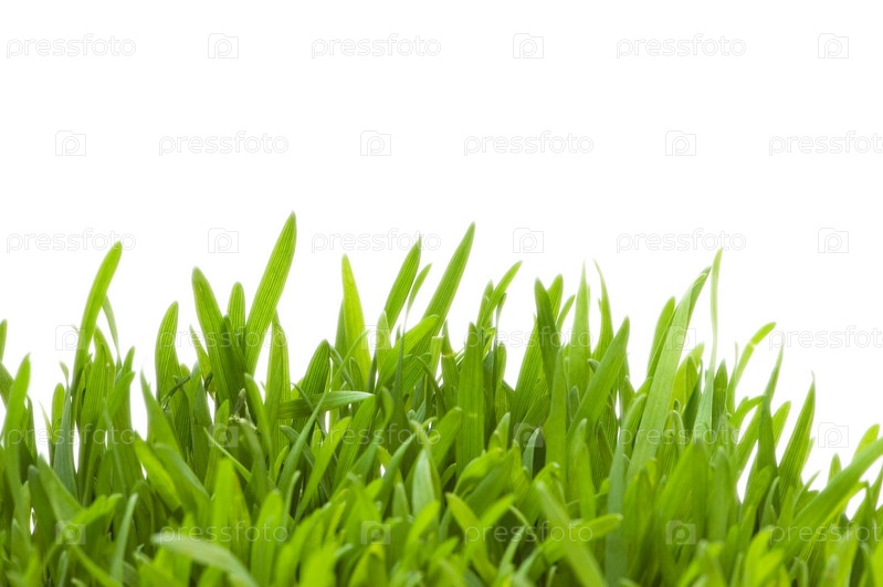 Зеленая трава на белом фоне