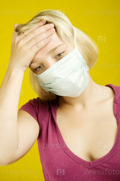 Девушка в маске держится за лоб