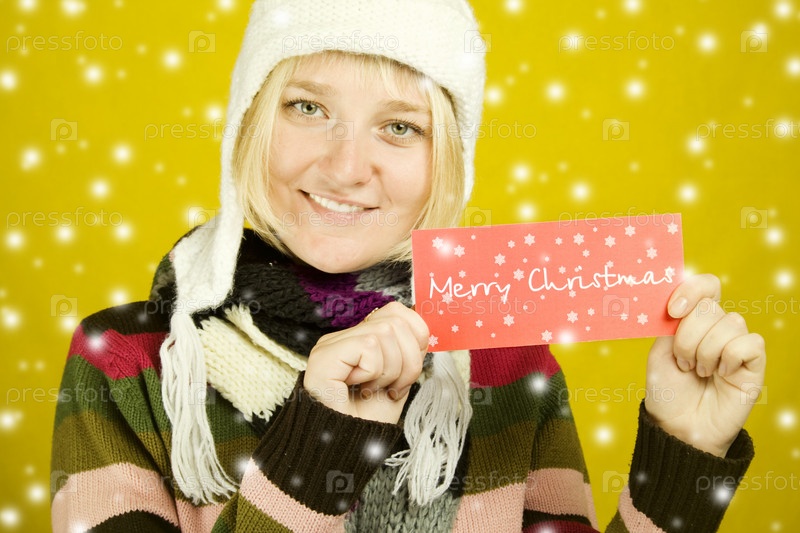 Девушка держит поздравительную открытку