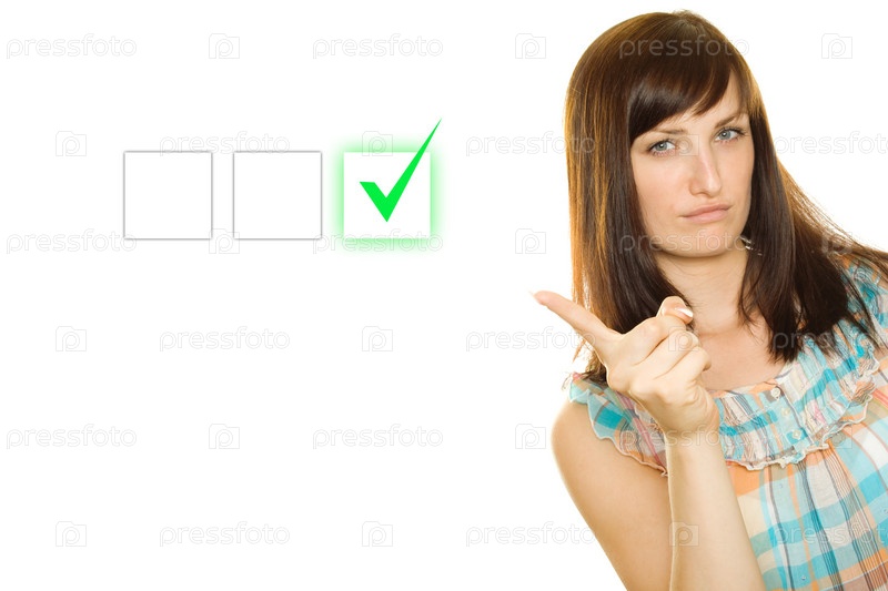 Девушка показывает указательным пальцем