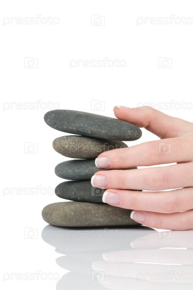 Женские руки, складывающие гальку