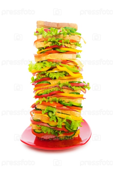 Гигантский бутерброд, изолированный на белом фоне