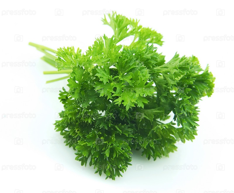 Пучок кудрявой петрушки на белом фоне