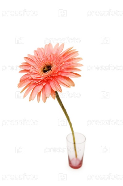 Гербера в стакане, изолированная на белом фоне