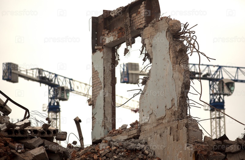 Разрушенное здание, землетрясение, бомба, террористическое нападение или стихийное бедствие, концепция