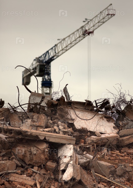 Разрушенное здание, землетрясение, бомба, террористическое нападение или стихийное бедствие, концепция