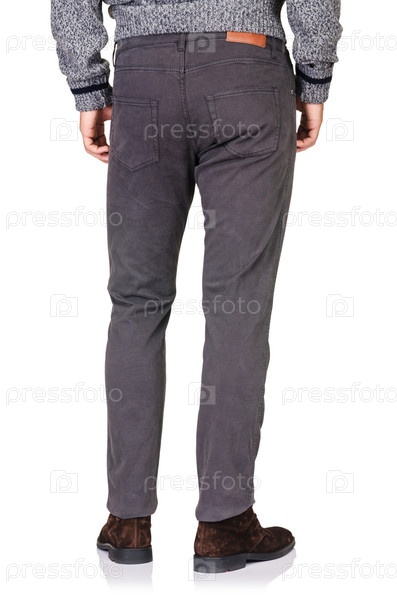 Концепция моды с брюками на белом фоне