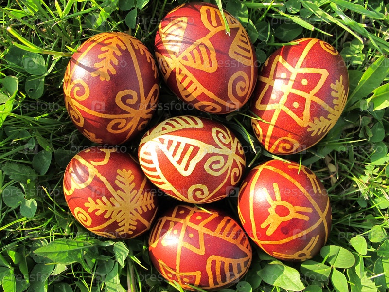 Хорватские традиционные пасхальные яйца на зеленой траве