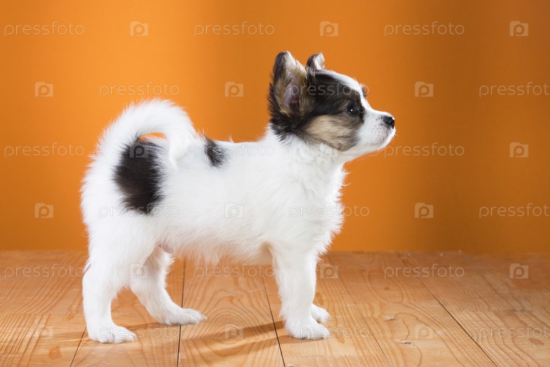 Щенок породы папильон стоит