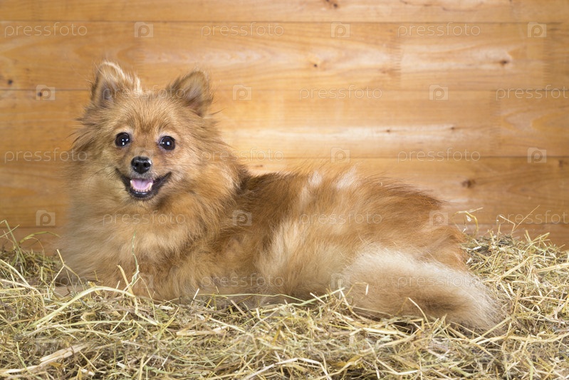 Померанский шпиц на соломе