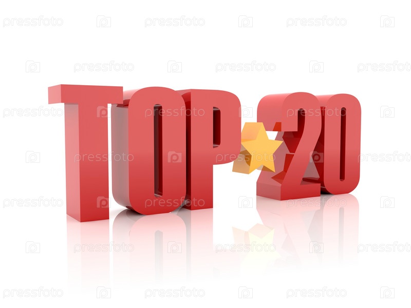 Коасная трехмерная надпись ТОП 20, изолированная на белом фоне