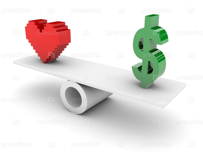 Противоположность любви и денег. Концептуальная 3D-иллюстрация
