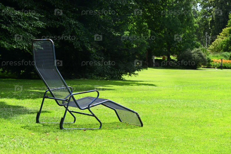 Шезлонг на зеленой траве
